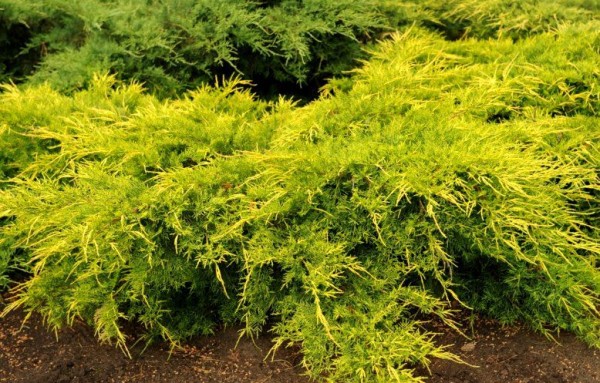 Popis: Široce rozložitý jalovec dorůstající do výšky 1,2 - 1,5 m a šířky 1,8 - 2,2 m. Barva jehličí je žlutá u rašících výhonů, starší výhony jsou žlutozelené. Koncové větvičky slabě převisají. Pomale rostoucí, velmi pěkný jehličnan.