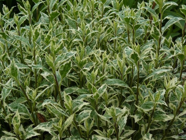 Popis: Trvalka dorůstající do výšky 60 - 80 cm. Listy jsou zelené s bíložlutým žíháním. Květy jsou světle modré, drobné. Kvete v srpnu až září.